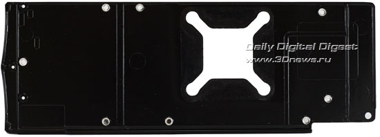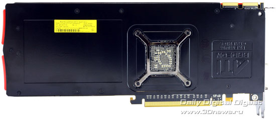 Обратная сторона платы практически полностью закрыта металлическим кожухом с гравировкой ATI.